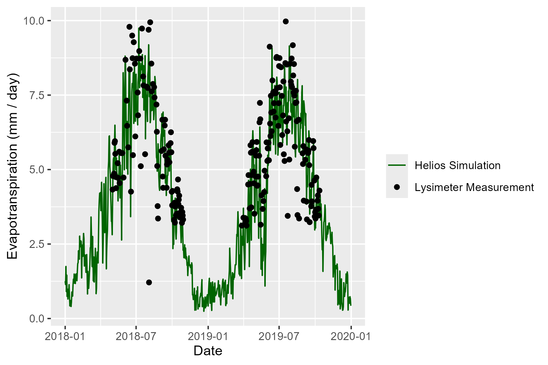Figure. Validation of Helios whole-tree almond ET based on weighing lysimeter data.